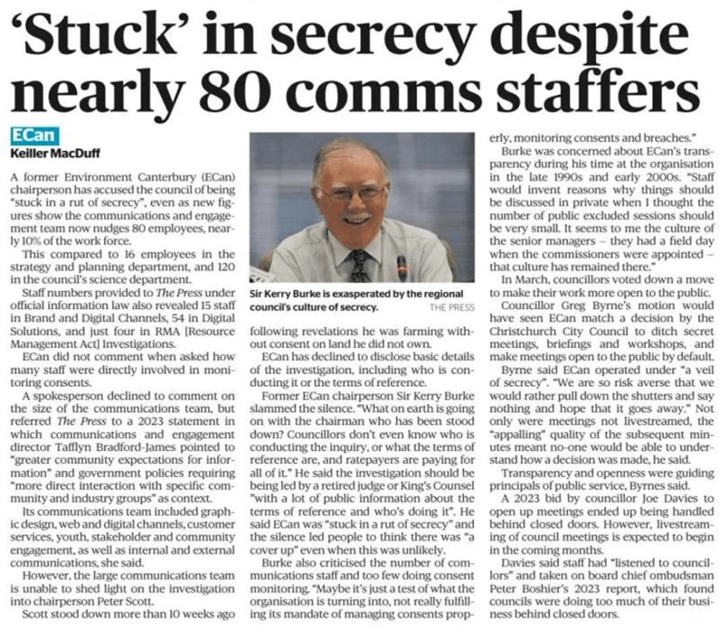 1. Absolutely gobsmacked by how many spin doctors ECAN employs, versus 4 (??) on RMA investigations. I am with Sir Kerry on this Greg.