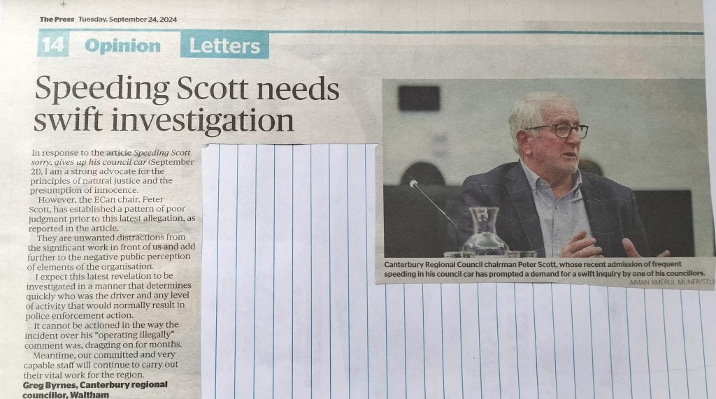 24 Sept, letter to the Editor